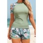 Bean green floral sleeved tankini