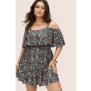 Floral off-shoulder swim dress with ruffle hem
